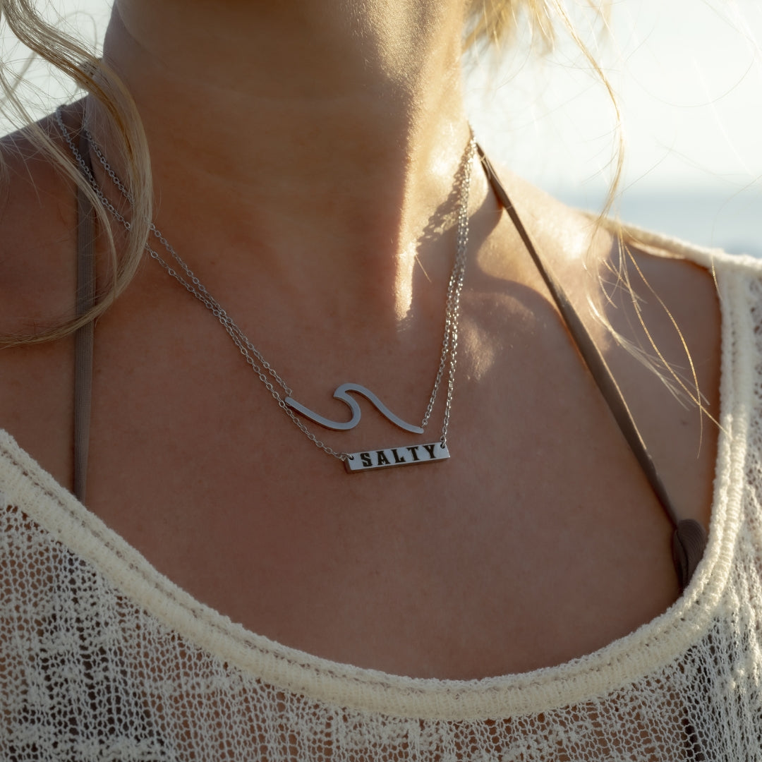 This bar necklace is perfect to wear alone or layer. Hypoallergenic, waterproof, stainless steel.